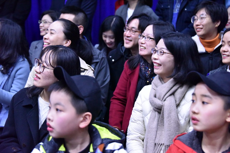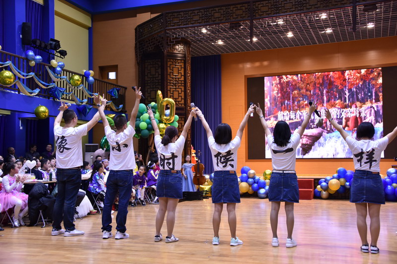 就連爸爸媽媽和老師們也來表演助興,為孩子們送上美好的祝福。體育館里掀起了一波又一波的高潮。