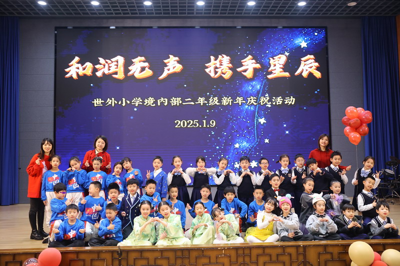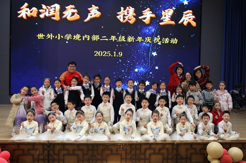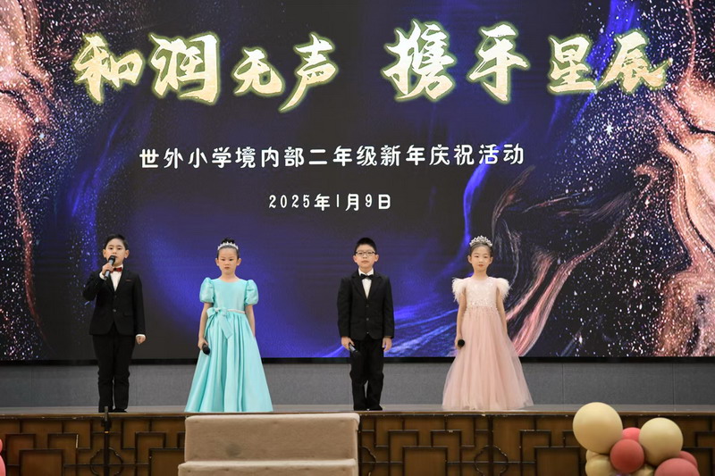 在陽光明媚的冬日早晨,世外小學(xué)境內(nèi)部二年級的師生們歡聚一堂,共同迎來了“和潤無聲,攜手星辰”新年慶祝活動。隨著主持人的熱情介紹,一場別開生面的新年慶祝活動在孩子們的歡聲笑語中拉開序幕。