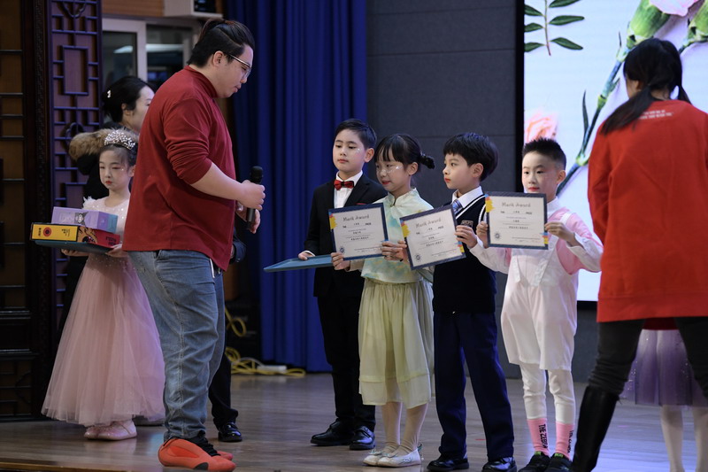 活動中,幸福的氣息彌漫在每一個角落。在二1班表演的《上春山》舞蹈中,孩子們身著綠色的服裝,手持風(fēng)箏,仿佛一群活潑可愛的小精靈,在舞臺上跳躍著、歡笑著。他們用舞蹈表達(dá)了對春天的向往和對大自然的熱愛,讓觀眾們感受到了春天的氣息和生命的活力。抽獎環(huán)節(jié)更是令人期待已久,孩子們滿懷期待地等待著抽獎結(jié)果的揭曉,當(dāng)幸運兒們上臺領(lǐng)獎時,他們的臉上洋溢著幸福的笑容。