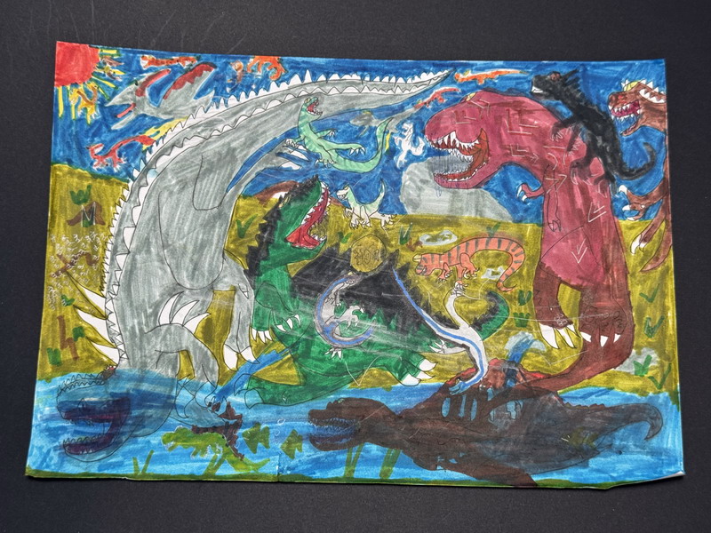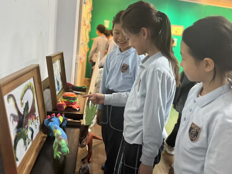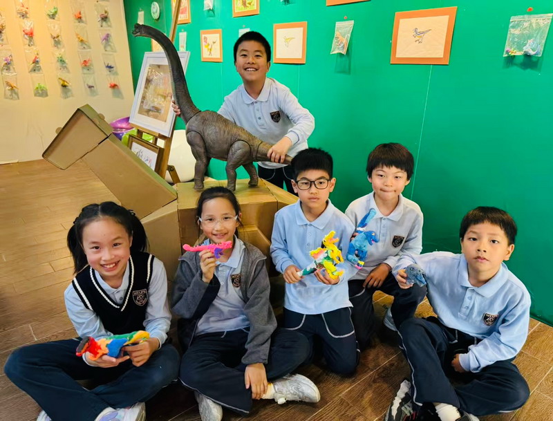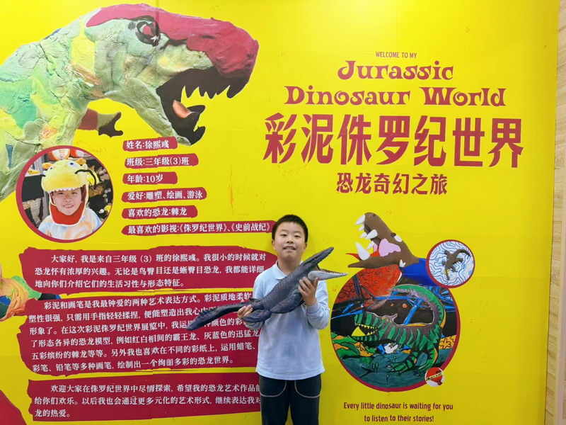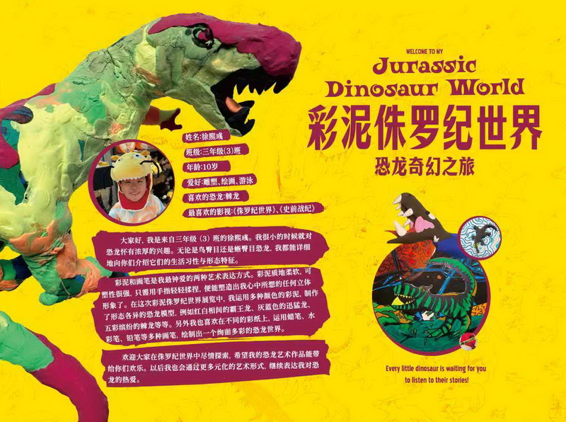 近日,秀空間變身"侏羅紀奇幻世界",三年級(3)班徐熙彧同學的彩泥恐龍主題展吸引了眾多師生駐足。這個由10歲孩子獨立策劃的展覽,不僅展出近100件栩栩如生的彩泥恐龍雕塑,更配有手繪場景圖與趣味科普卡,展現出不俗的藝術創造力與古生物知識儲備。
