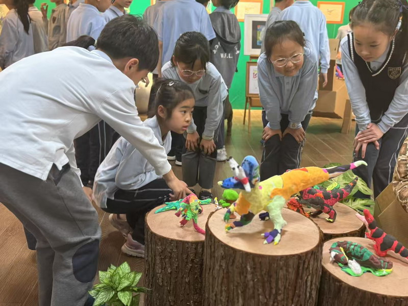 展覽特設互動區,參觀者可體驗用特制彩泥制作迷你恐龍。五年級的王同學捏出長頸的腕龍后興奮地說:"原來棘龍的牙齒像魚叉一樣!這些都是“徐老師”教我的。"正如展簽上稚嫩而真摯的寄語:"每只小恐龍都在等你聽它們的故事。"