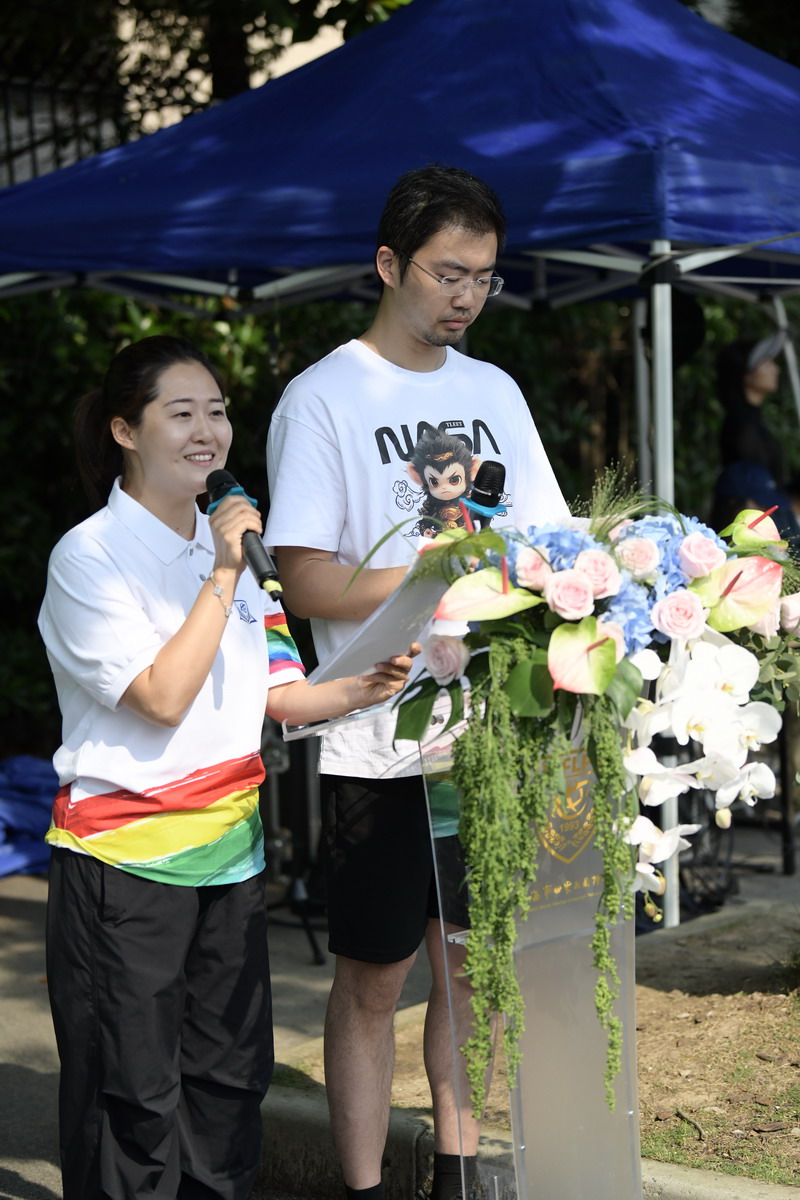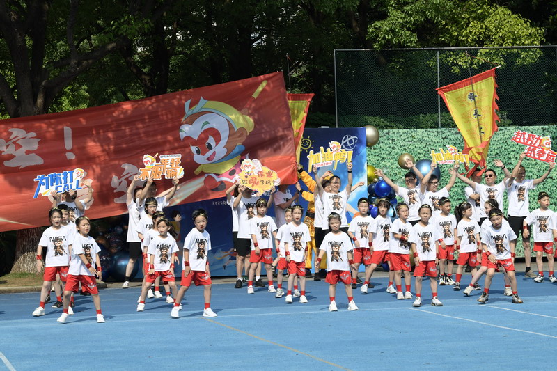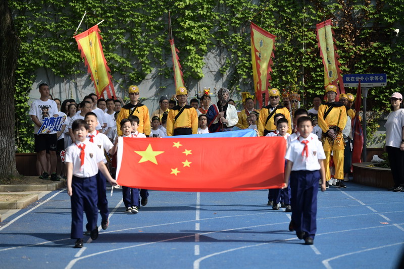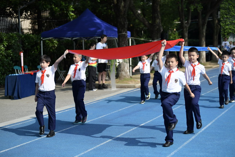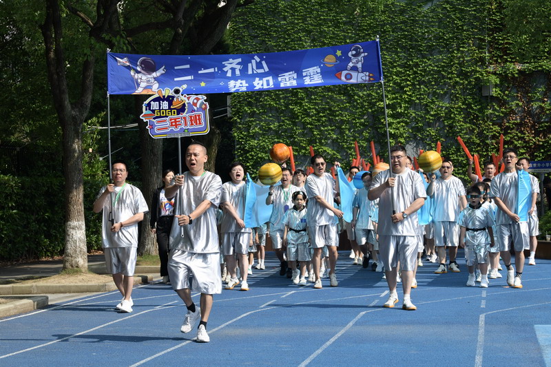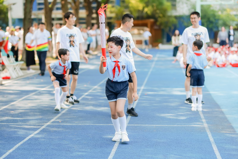 入場(chǎng)式后,“爸爸運(yùn)動(dòng)鞋”火炬接力儀式正式啟動(dòng)。教師代表與家長(zhǎng)代表依次傳遞火炬,當(dāng)爸爸們將火炬交到孩子手中時(shí),《驕傲的少年》音樂(lè)響起,孩子們高舉火炬奔跑,象征著團(tuán)結(jié)合作與勇敢堅(jiān)強(qiáng)的精神在兩代人之間傳承。世外小學(xué)校長(zhǎng)張悅穎宣布活動(dòng)開(kāi)幕,世外小學(xué)副校長(zhǎng)閔燕與家委們共同放飛逐夢(mèng)氣球,五彩氣球升空的瞬間,全場(chǎng)響起熱烈的歡呼聲。