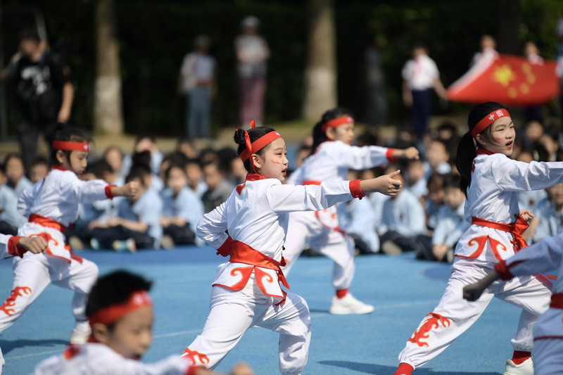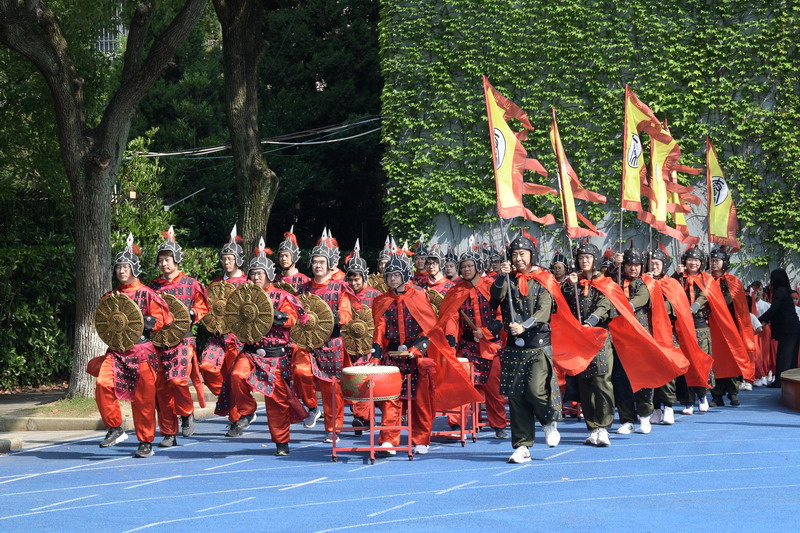 國(guó)旗方陣與校旗方陣率先登場(chǎng),莊重的步伐傳遞著對(duì)祖國(guó)的熱愛(ài)與對(duì)學(xué)校的自豪。