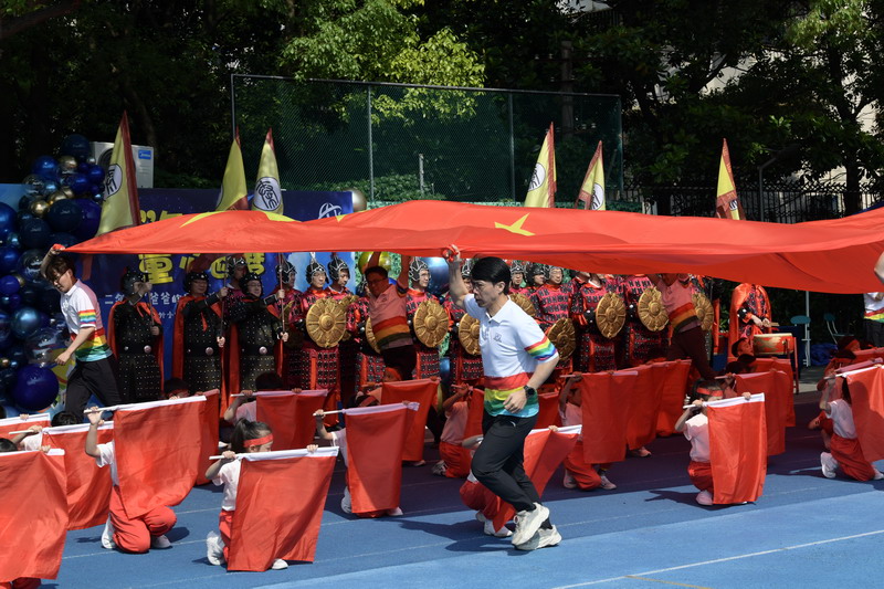 在《天地龍鱗》激昂的音樂(lè)聲和熱血澎湃的鼓點(diǎn)中,大家期待已久的“爸爸運(yùn)動(dòng)鞋”活動(dòng)即將開(kāi)啟。?!盎盍ξ漤嵣纭钡暮⒆觽?yōu)榇蠹艺故玖恕吧倌昴倪浮钡娘L(fēng)采,為“爸爸的運(yùn)動(dòng)鞋”入場(chǎng)式拉開(kāi)帷幕。