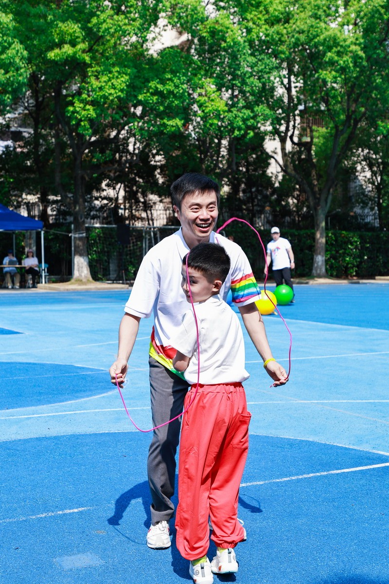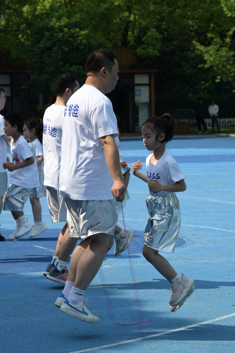 親子跳繩:一分鐘的計(jì)時(shí)賽里,繩子翻飛如銀蛇,爸爸與孩子配合默契,汗水與笑聲交織,二(1)班的十組家庭奪得冠軍。