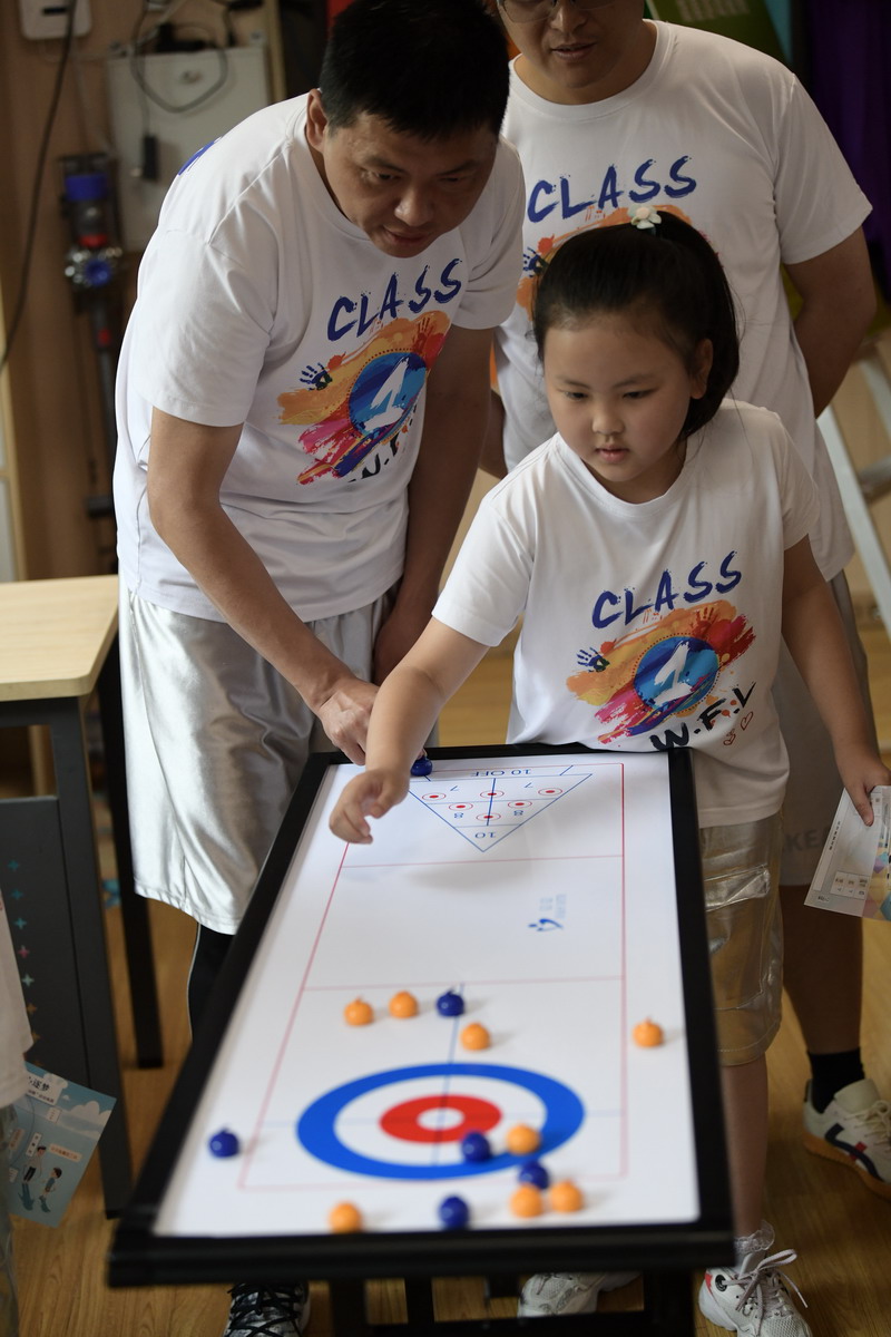 十二個(gè)親子游戲攤位成為歡樂(lè)的海洋:“無(wú)敵風(fēng)火輪” 挑戰(zhàn)中,爸爸和孩子一起默契前行;“運(yùn)球大作戰(zhàn)” 里,父子倆齊頭并進(jìn);“趣味投壺” 前,孩子與爸爸瞄準(zhǔn)靶心默契配合;“父子能量甜工廠”中,父親全力踏動(dòng)單車(chē),為孩子的甜蜜夢(mèng)想源源不斷地輸送能量……志愿者家長(zhǎng)精心設(shè)計(jì)的游戲,讓每個(gè)家庭都沉浸在親子互動(dòng)的溫馨中。