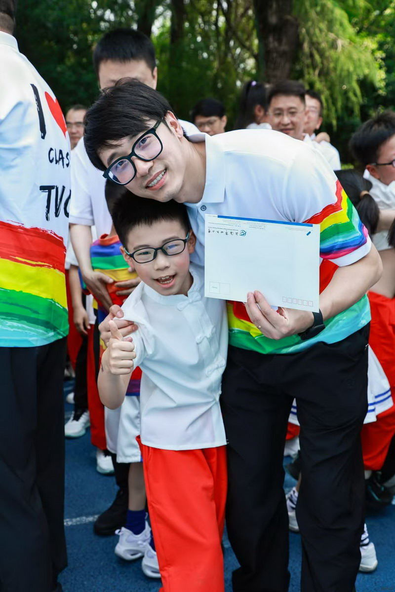 活動(dòng)接近尾聲,孩子們?yōu)榘职炙蜕细兄x卡。一個(gè)大大的擁抱、一個(gè)甜甜的親吻,讓平日含蓄的父愛(ài)在此刻盡情流淌。今天,我們看到了爸爸們的另一面——他們不僅是家庭的守護(hù)者,更是孩子成長(zhǎng)路上的運(yùn)動(dòng)伙伴與精神榜樣。