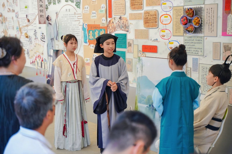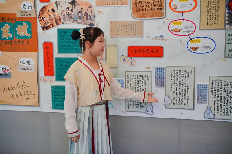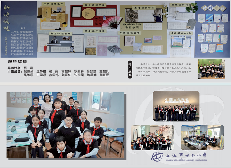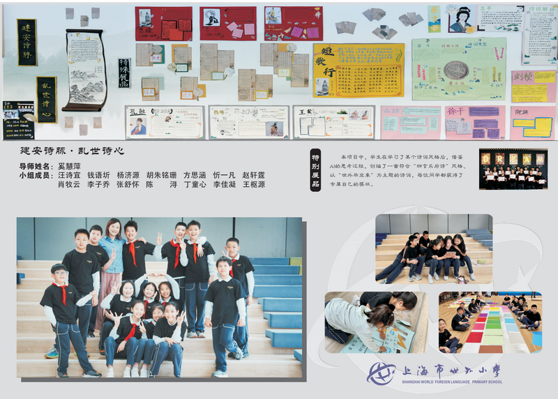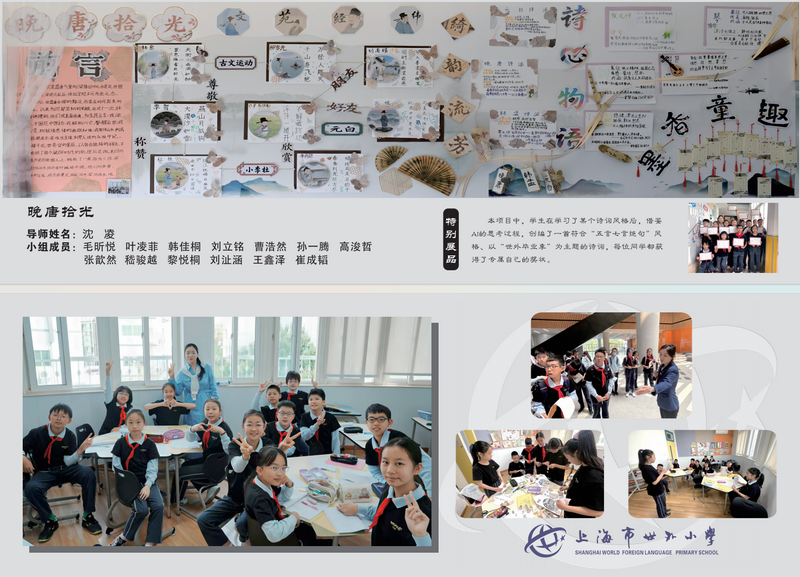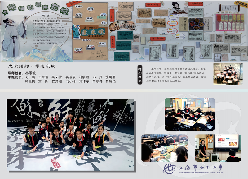 在此跨學科項目中,學生經過獨立探究與小組合作,學習某個詩詞的流派特點、朗讀詩詞、嘗試創作詩詞、并篩選展品、制作展板,最終交出了一份完美的畢業答卷。