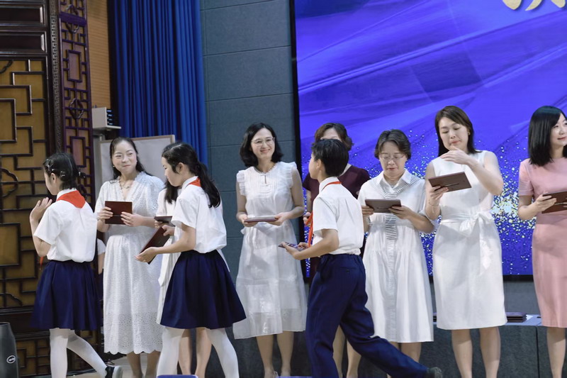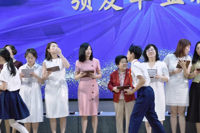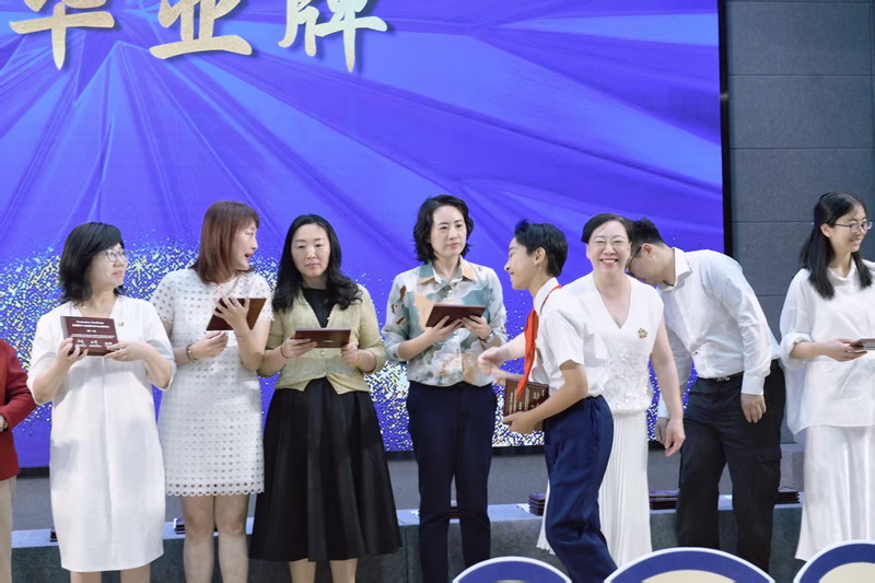 在莊重的畢業牌頒發環節,5位校長和11位老師有序為同學們頒發畢業紀念牌,見證這一重要時刻。