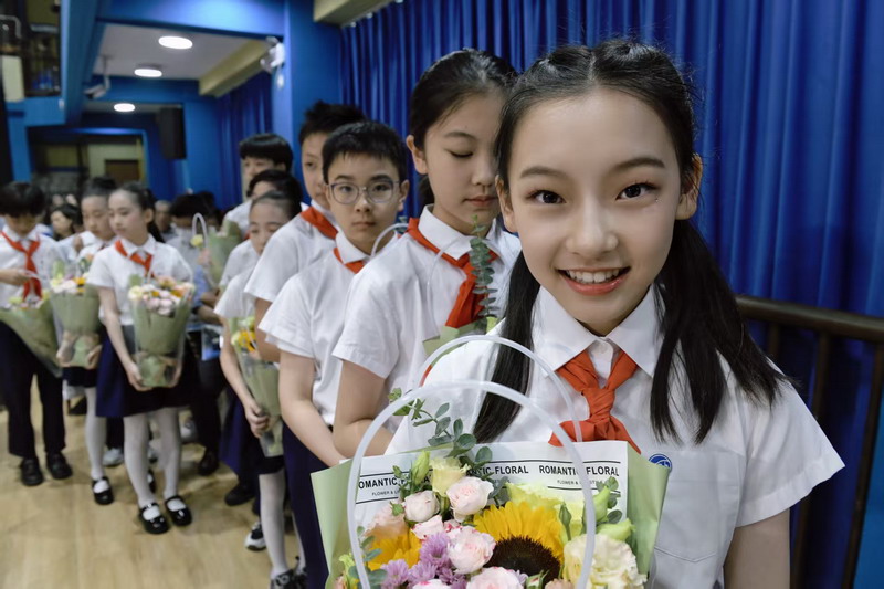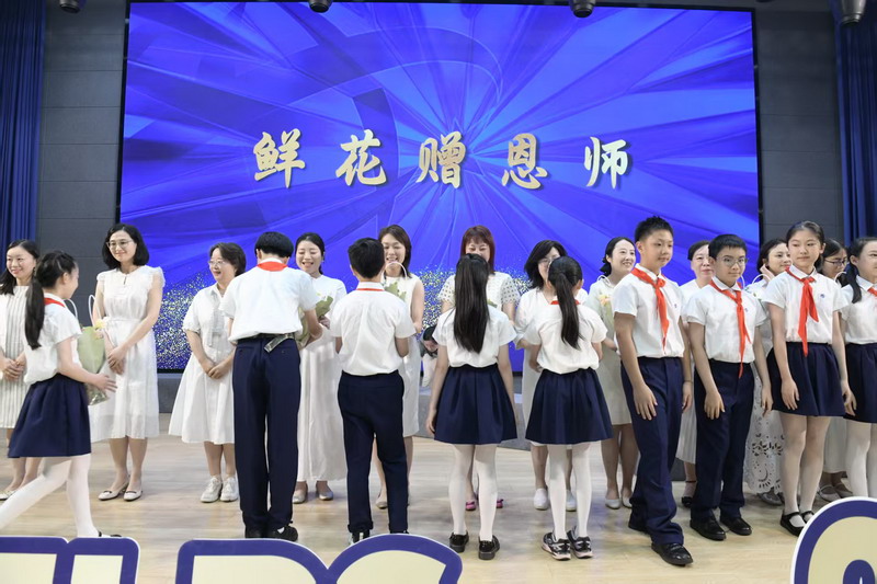 同學們為課程組導師及五年級組16位老師獻花,以鮮花表達最誠摯的謝意。