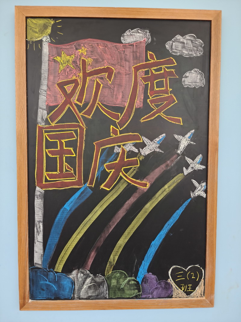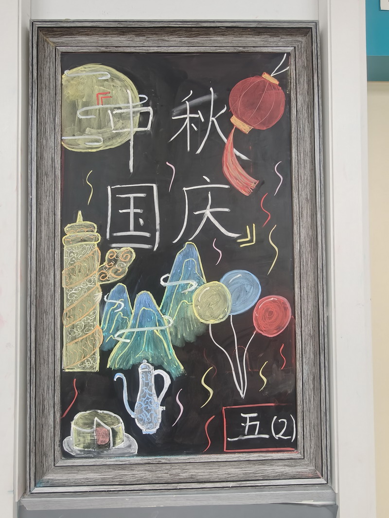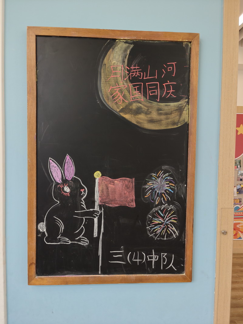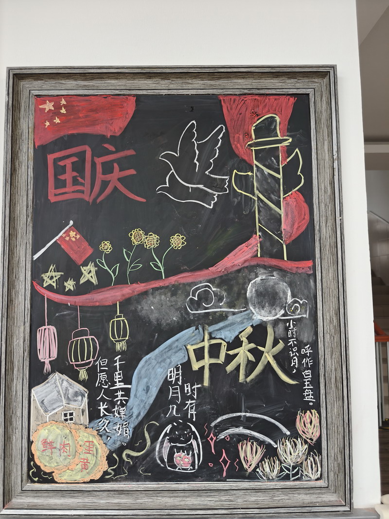 節日的世外小學校園,處處洋溢著喜慶與祥和。早在國慶前夕,各個班級就已行動起來,師生攜手,精心布置了以國慶和中秋雙節為主題的小黑板。一塊塊圖文并茂、創意十足的黑板報,或描繪祖國大好河山,或講述革命先烈故事,或展現航天科技成就,或融合月餅、玉兔等中秋元素,不僅美化了教室環境,更成為傳播紅色文化、弘揚傳統美德的生動窗口,引得同學們課間駐足觀看,討論交流。