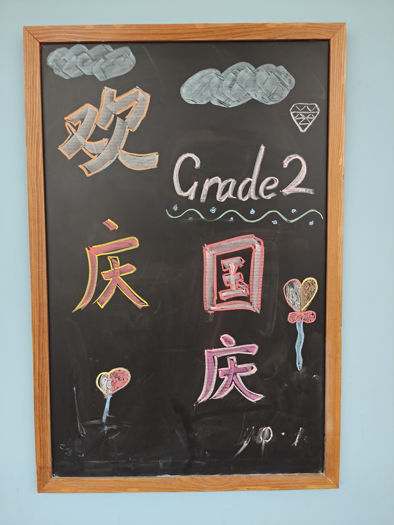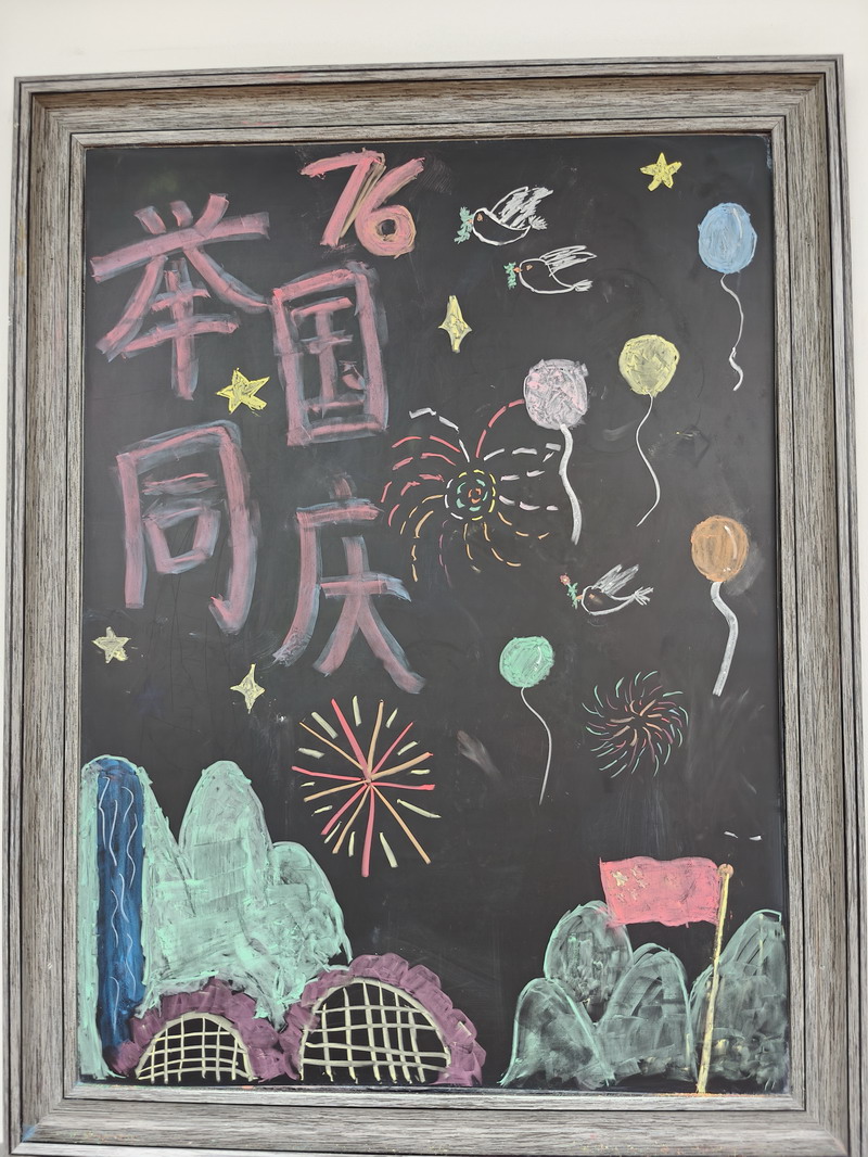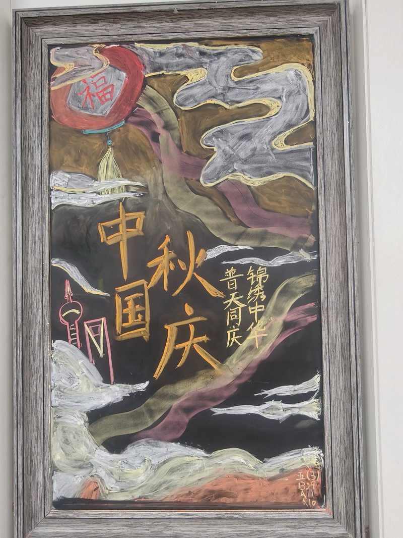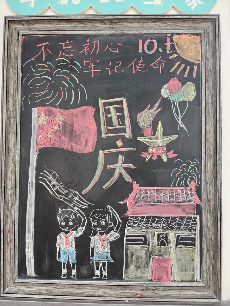 節日的世外小學校園,處處洋溢著喜慶與祥和。早在國慶前夕,各個班級就已行動起來,師生攜手,精心布置了以國慶和中秋雙節為主題的小黑板。一塊塊圖文并茂、創意十足的黑板報,或描繪祖國大好河山,或講述革命先烈故事,或展現航天科技成就,或融合月餅、玉兔等中秋元素,不僅美化了教室環境,更成為傳播紅色文化、弘揚傳統美德的生動窗口,引得同學們課間駐足觀看,討論交流。