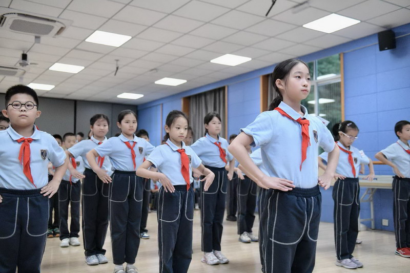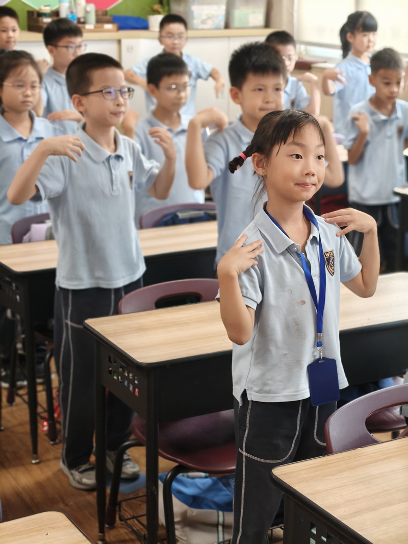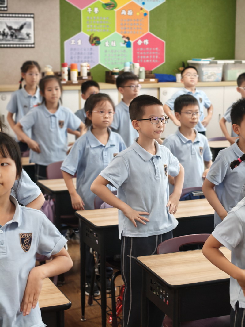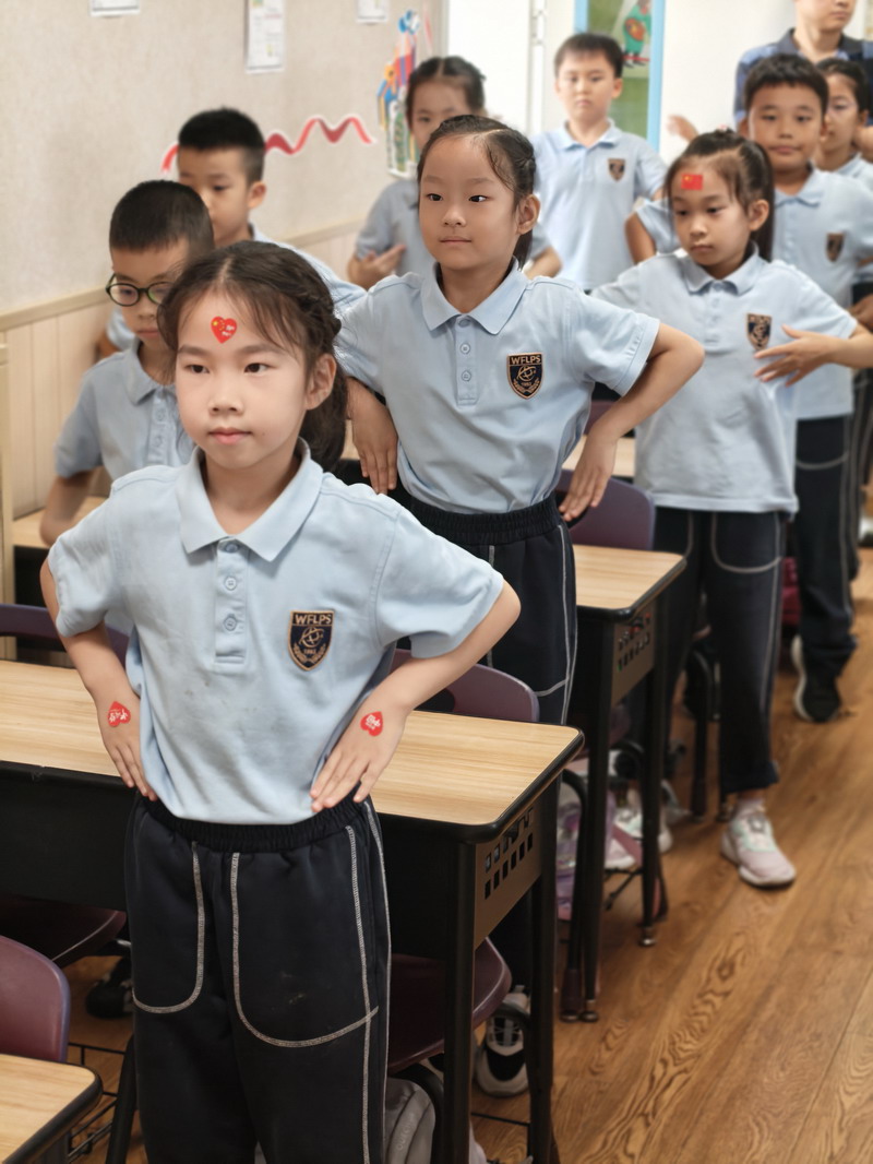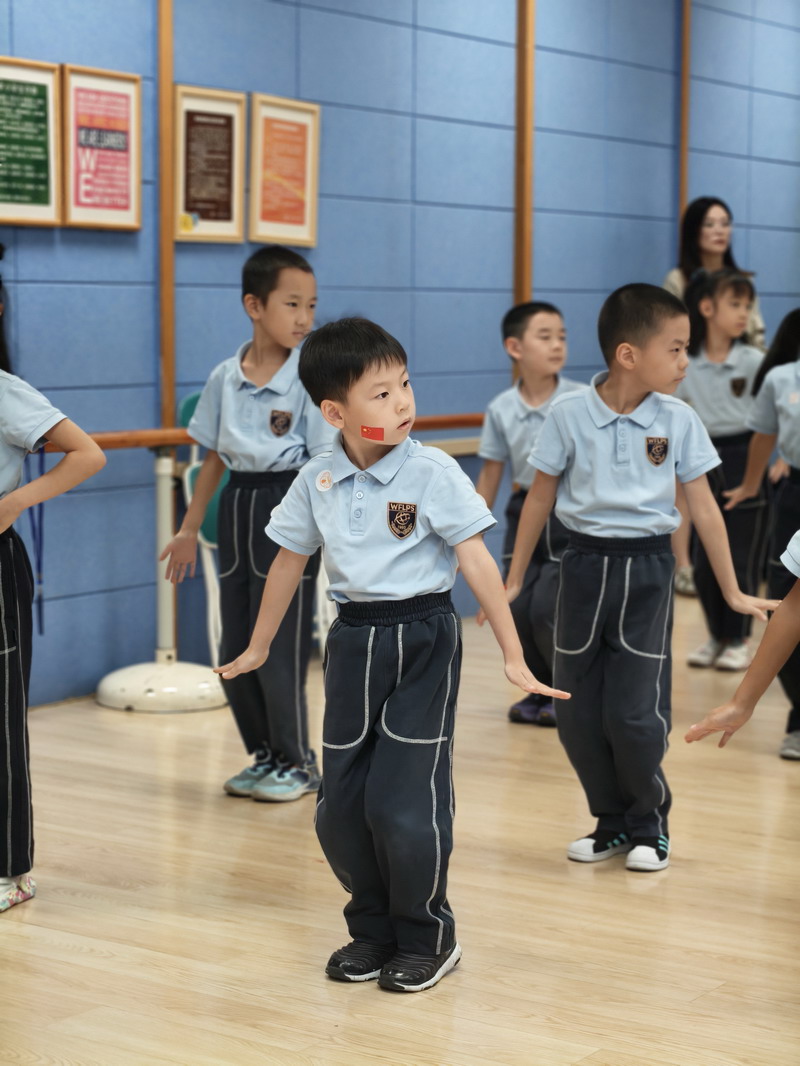 上午時分,一場別開生面的“迎國慶”室內操比賽在形體房有條不紊地展開。盡管天氣因素將活動移至室內,但同學們的熱情絲毫未減。伴隨著歡快的旋律,孩子們在課桌前有限的空間里,整齊劃一地做出每一個動作。他們精神飽滿,動作有力,眼神中透露出堅定與自豪。抬手、轉身、跳躍……一舉一動,不僅展現了世外學子良好的精神風貌和紀律性,更用這種特殊的形式,舞動出對祖國母親的無限熱愛與祝福。這場特殊的比賽,既鍛煉了體魄,更是一次深刻的集體主義教育和愛國主義情感熏陶。
