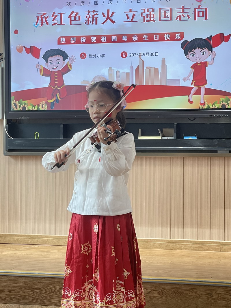 紅色薪火,代代相傳;強國志向,從小樹立。世外小學此次“承紅色薪火 立強國志向”國慶主題系列活動,通過環境營造、儀式感染、體藝展示、聯歡互動、科創啟迪等多種形式,將愛國情感、傳統文化、集體榮譽、創新精神深度融合,讓全體師生度過了一個有意義、有深度、有溫度的國慶節。它不僅是一次節日慶祝,更是一堂深刻的思政大課,必將激勵著世外小學的每一位學子,將愛國情、強國志、報國行融入日常的學習與生活中,努力成長為能夠擔當民族復興大任的時代新人!
