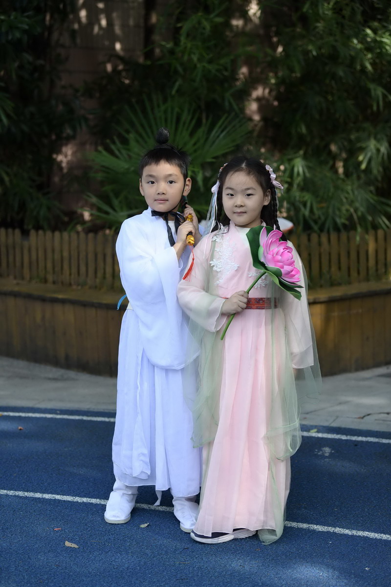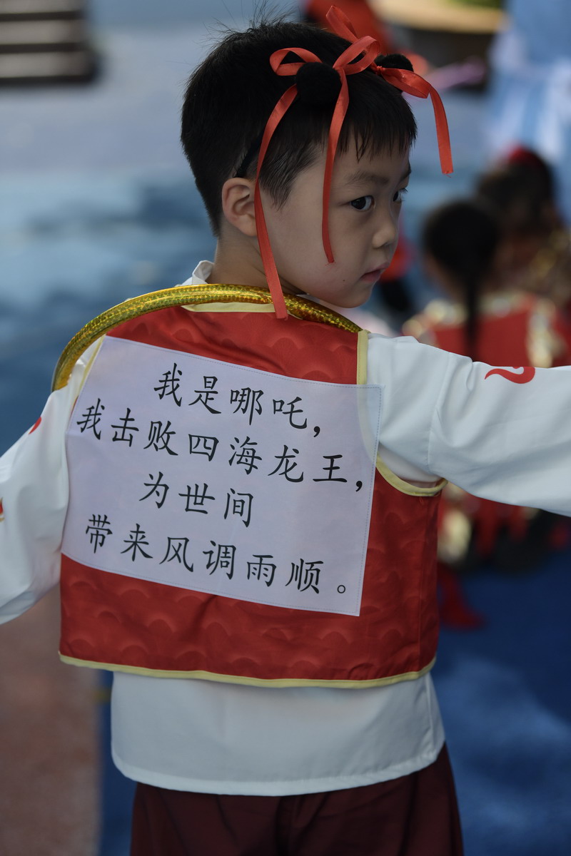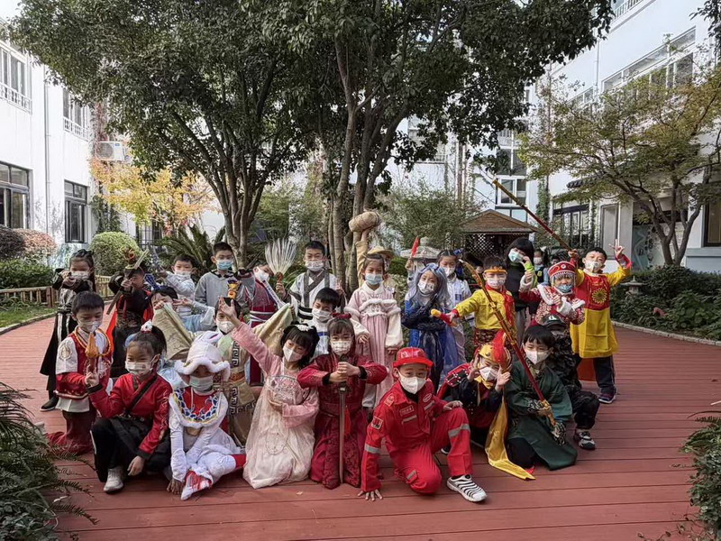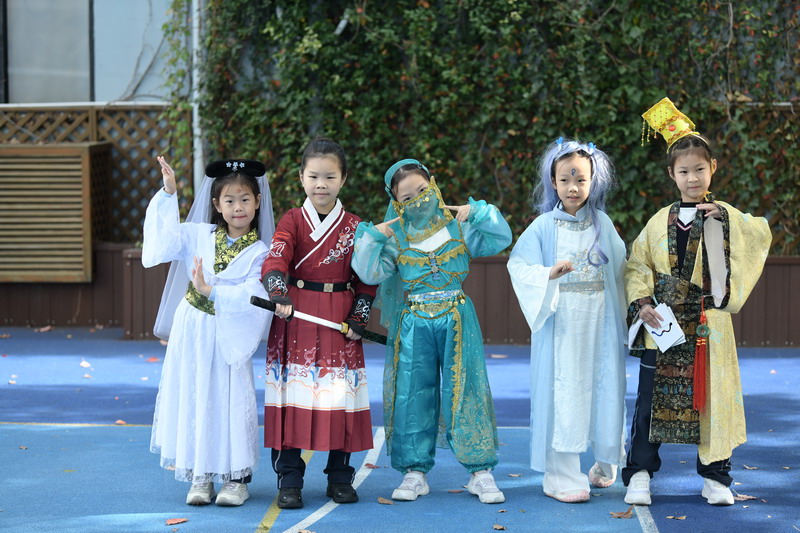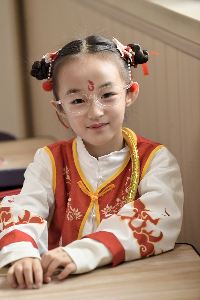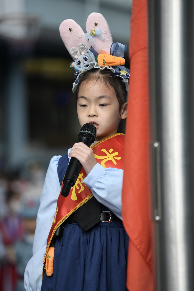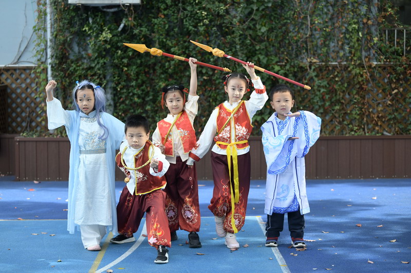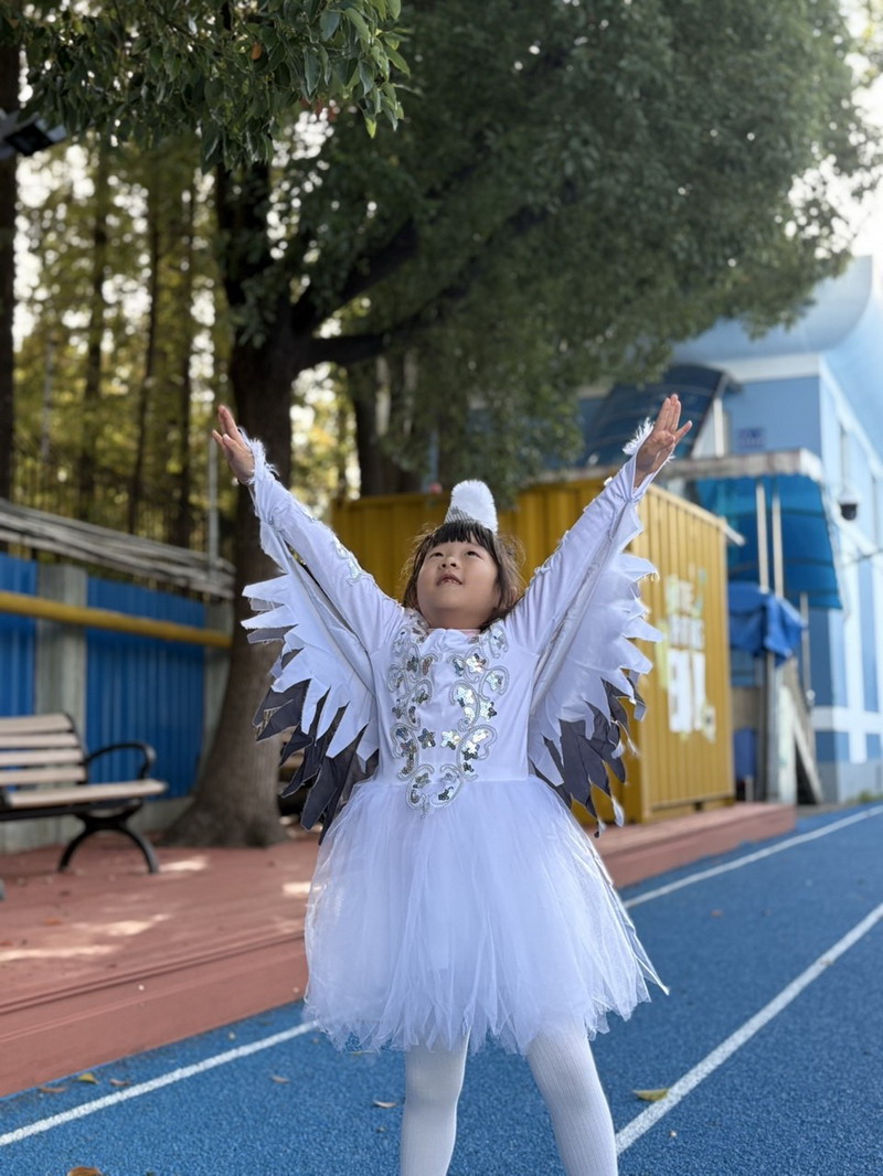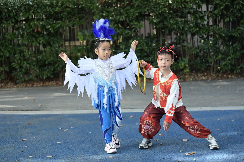 升旗儀式結束后,故事的帷幕拉開,孩子們便踏上了一趟奇妙的英雄之旅。那一刻,教室和操場變成了任想象力馳騁的廣闊天地——有的孩子披上光芒,成了追逐太陽的夸父,步伐堅定;有的孩子掌心向上,成了煉石補天的女媧,心懷蒼生。