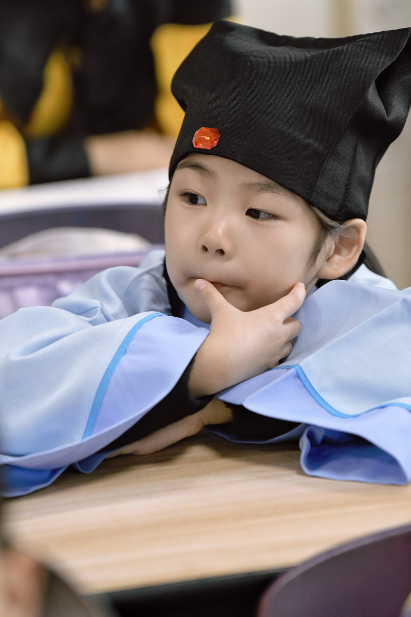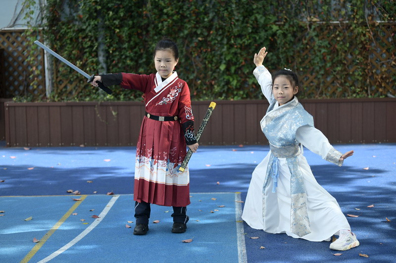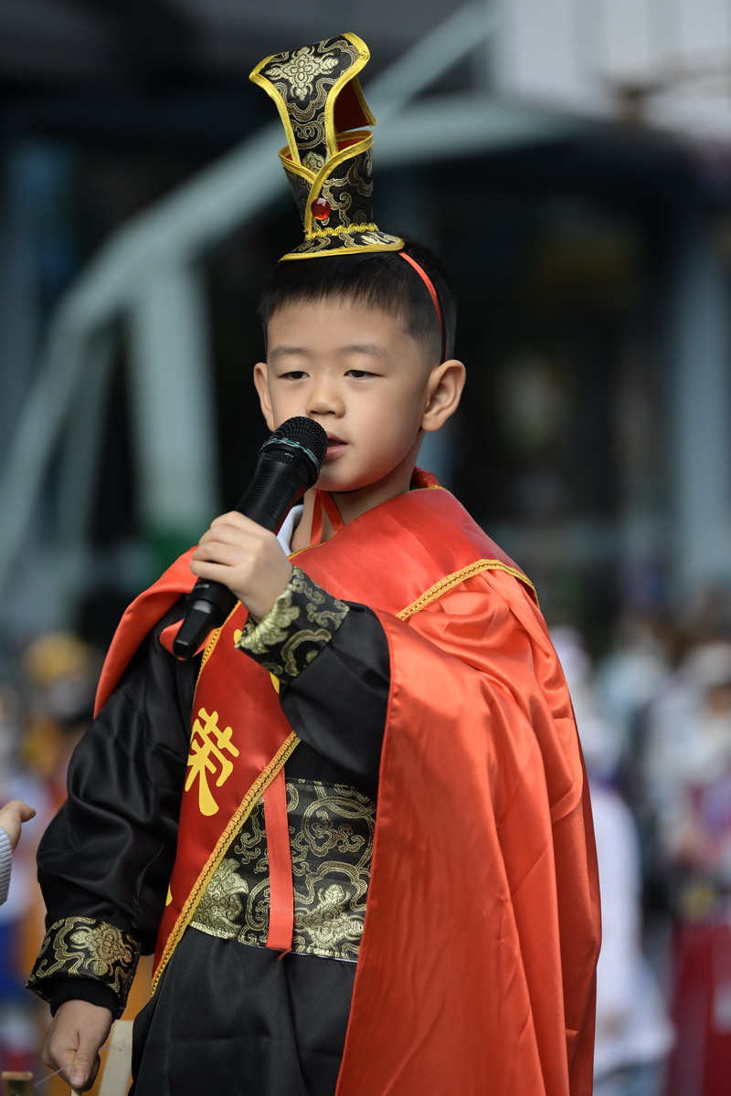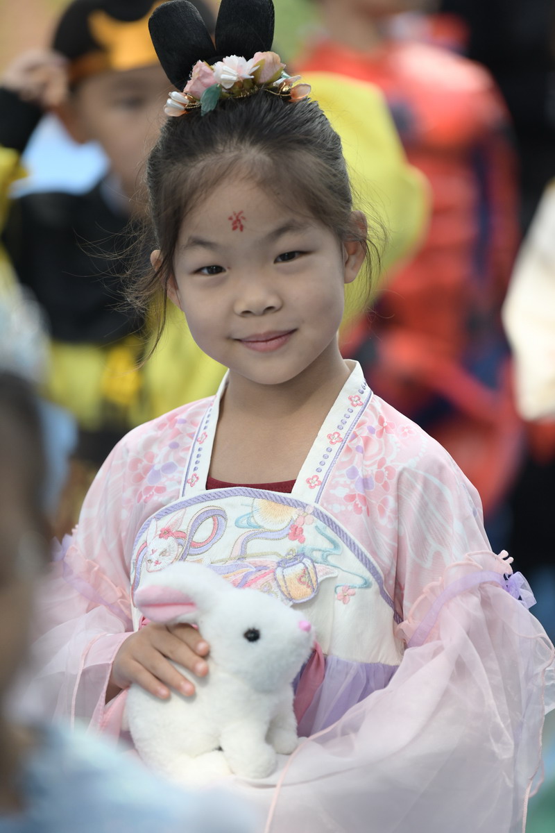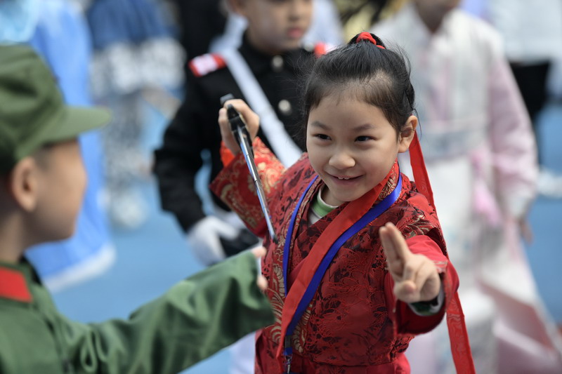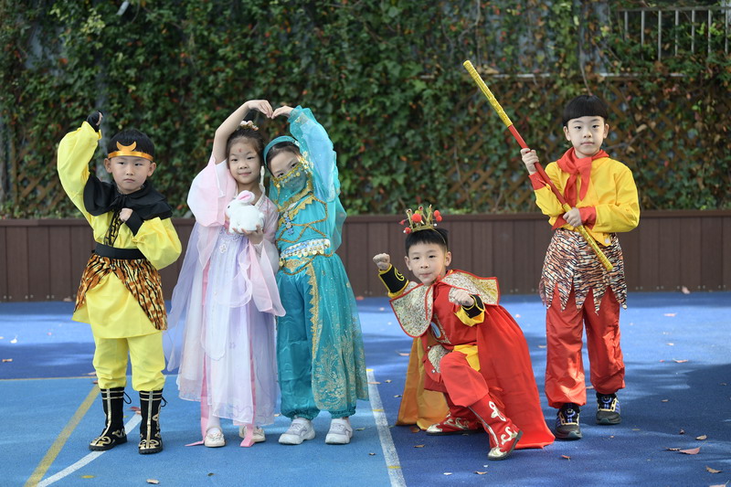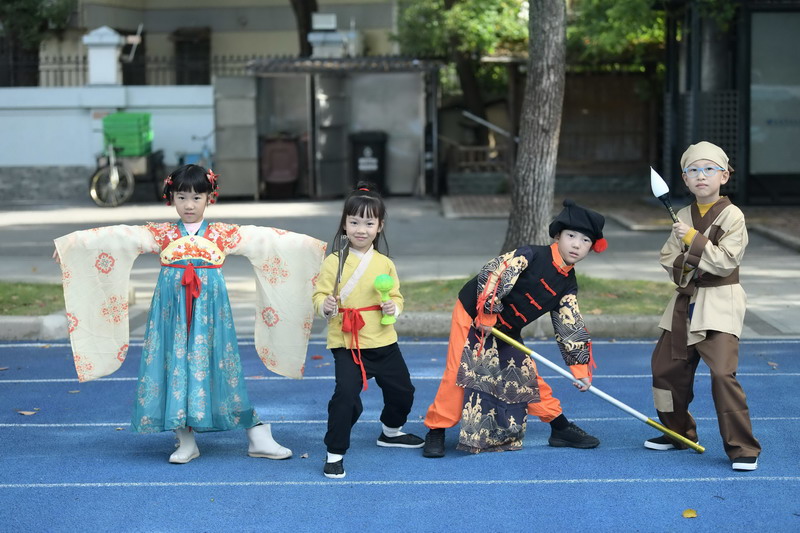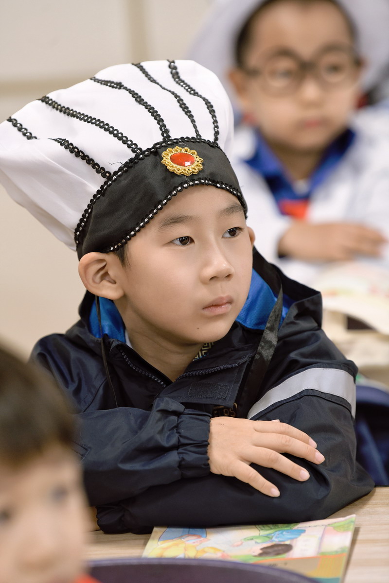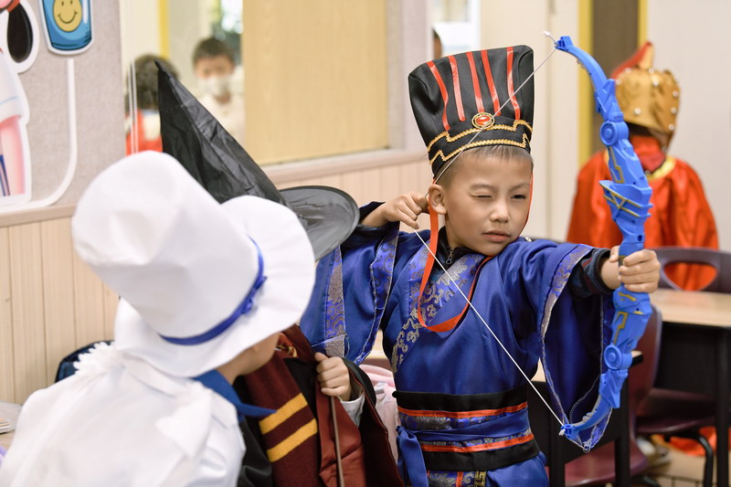 升旗儀式結束后,故事的帷幕拉開,孩子們便踏上了一趟奇妙的英雄之旅。那一刻,教室和操場變成了任想象力馳騁的廣闊天地——有的孩子披上光芒,成了追逐太陽的夸父,步伐堅定;有的孩子掌心向上,成了煉石補天的女媧,心懷蒼生。