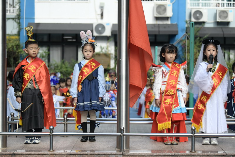 11月10日,金風送爽,世外小學一年級的小朋友接到了一個有趣的任務——挑選一位最喜愛的英雄朋友,走進他的傳奇故事,化身成他,開啟一場“故事英雄奇妙扮演會”!孩子們用自己的聲音、動作和智慧,把英雄的故事“演”活,把英雄的精神“種”在心里。四位一年級小朋友榮幸地成為升旗手,開啟了“世外小學英雄節”的序幕。