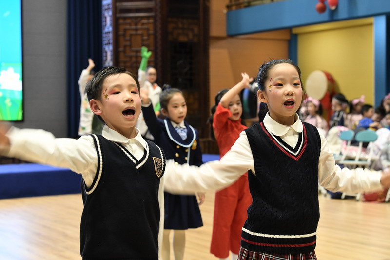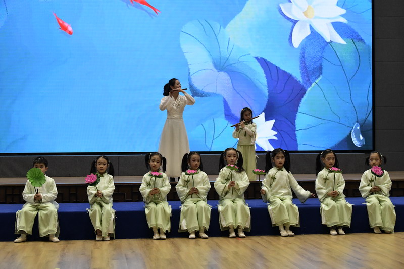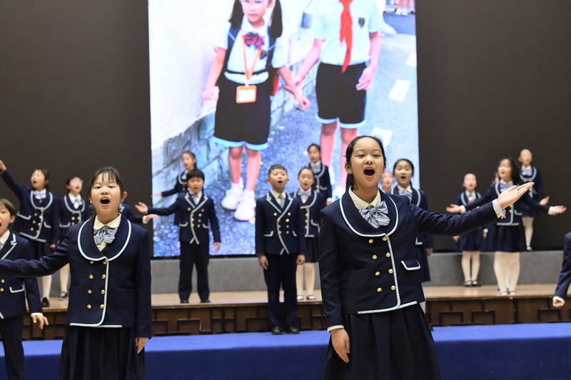 晚會的歌聲響起,五年級的哥哥姐姐們,如同開學第一天那般牽著一年級孩子們的手走上臺。他們臉上帶著甜甜的笑意,清亮又溫暖的歌聲便流淌開來。歌聲里裹著對弟弟妹妹的歡迎,藏著對新朋友的祝福,每一個音符都像小太陽一樣,暖融融地落在臺下每一個小朋友的心上。